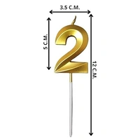 The Baking Curv Golden Number 2 Candle | Metallic Gold Cake Topper for Birthday, Party Decoration, Kids & Adults Celebration| Number Candle | Birthday Candle